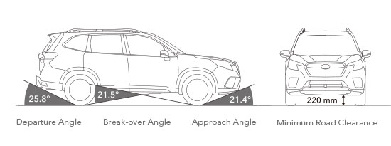 El Forester fue diseñado no solo con una elevada altura de SUV al suelo, sino también con ángulos optimizados de aproximación, salida y de quiebre. Todo esto permite superar obstáculos sin sufrir daños ni quedar atascado.