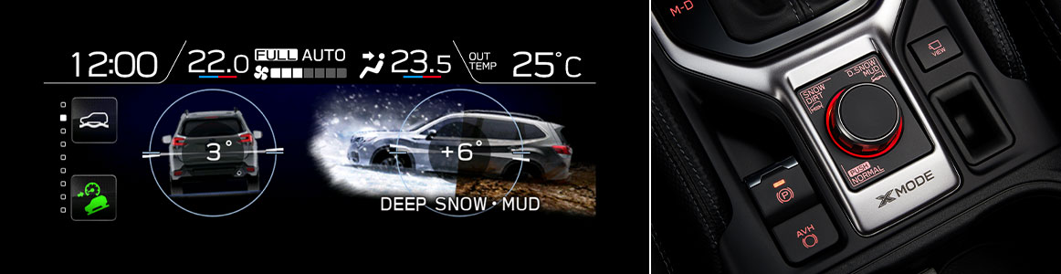 Elige entre [NIEVE/TIERRA] o [NIEVE PROFUNDA/BARRO] para una conducción confiable en terrenos difíciles con la función dual X-MODE. El sistema permanece en modo de espera a alta velocidad y se reactiva automáticamente al reducir la velocidad, para que puedas concentrarte en conducir sin reactivarlo manualmente. Además, el Control de Descenso en Pendientes ayuda a mantener una velocidad constante en descensos resbaladizos, añadiendo seguridad a tu experiencia de manejo.*